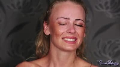 Gangbang with infinity pervert guys, sucking those cocks and enjoying her time, got too much cum on her face