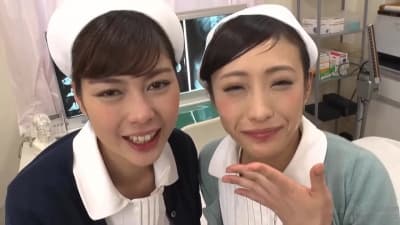 Beautiful Japanese Nurses love to suck cock because these three hotties are loving his meat in their mouths