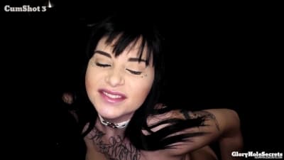 This kinky dark haired babe is horny for cum which means that she'll do anything for it as you see here, she manages to swallow 16 loads of cum.