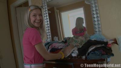 This teen doesn't need anybody to take some pleasure. With the help of two dildos she knows how to tickle her ass and her pussy perfectly!