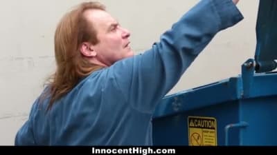 This beautiful brunette will have an unforgettable sexual adventure today when she indulges the janitor in the sports locker room.