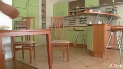 This guy can't wait to try Asian and he proves it in this video as he bangs her in the kitchen to hear her moan
