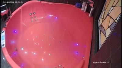Setting Down in the jacuzzi when she brought two of her friend and start playing their dick under the hot water