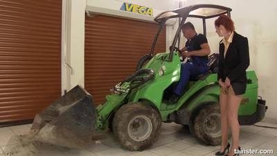 Video with scenario, a man in work clothes cleaning a machine and then when the secretary arrives, he fucks her.