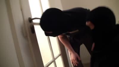These masked men couldn't resist her any longer and had to penetrate her deeply in the bathroom