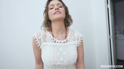 A very beautiful mother-in-law, coming back from shopping, tests her new outfit for her son-in-law, and he enjoys it, wink wink.