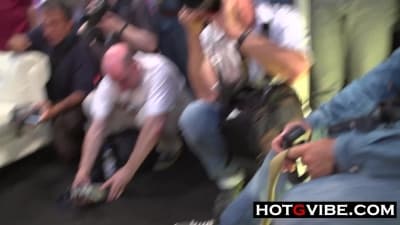 These horny sluts made an amazing show back in the porncon enjoying playing with toys and teasing the audience