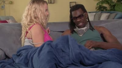 Beautiful mature Nikki Delano, stumbles into the living room with her stepdaughter Angela Attison and her black guy, who agrees to have threesome sex!