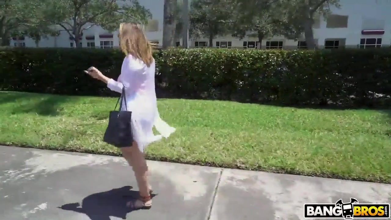 Brunette babe is shy at first but by the end she gets greedy. She gets invited to the bus and gets her pussy destroyed