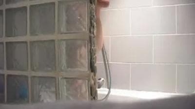Here we see a guy in the shower being spied on and we love to get involved and watch him in action too