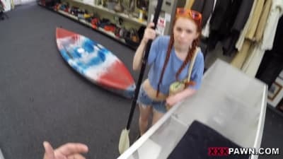 This redhead babe knows how to get herself out of a sticky situation and it involves giving some good head