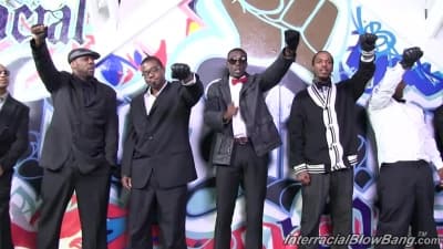 Gangbang party with only one white slut, sucking everyone dicks, big black cocks around here sucking them
