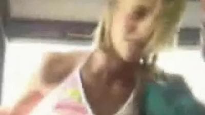 This woman is so horny and she can't wait to fuck at home so she begins to fuck him in the back of the bus