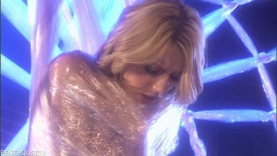 Hot blonde caught in a spider web