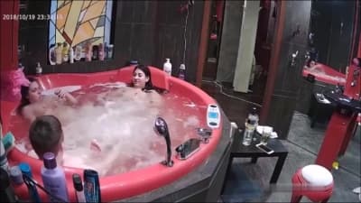 Hot Jacuzzi threesome with Beautiful Lacy she is sharing this guy big cock with another girl inside the water