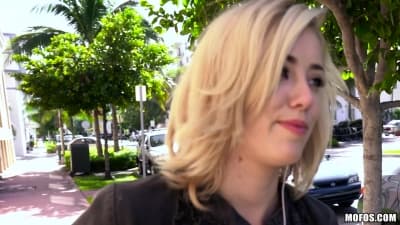 Cam guy picks on Haley as she sits at a table, sweet talks her into fucking him on camera and takes her to a backyard do to the deed - she is SO sexy