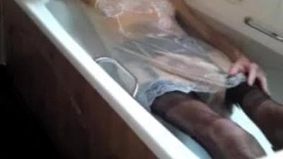 In this video we enjoy watching a horny dude in lingerie getting his dick hard as he enjoys a hot bath