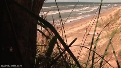 Somebody is spying on this couple on the beach, they think they are all alone and can have sex in private. They are wrong.