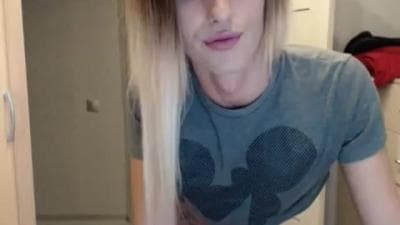 This is a blonde enters a video chat, she has hundreds of people watching her on her webcam, she surprises them by showing them she has a cock.