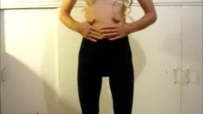 This sissy shemale slut has a great time as she gets her big dick hard and then rubs it off on camera