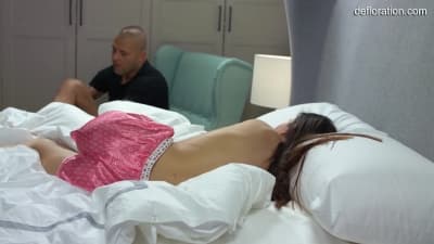 Mona Bregvadze is sucking on his cock to get herself excited to have her virginity taken by this stiff daddy