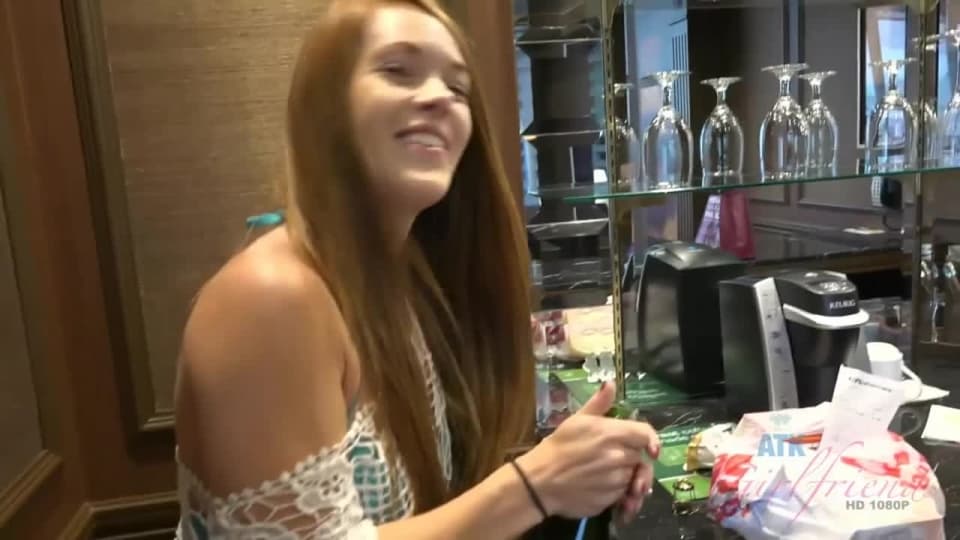 A glass of champagne before offering her pussy