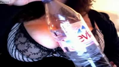 This bitch has big tits for you to enjoy in front of the camera as her man is waiting to cum all over them