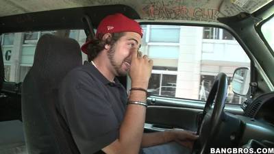 Ava Addams and Abella Anderson Share 3 strangers cocks in a van