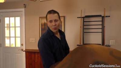 Two dudes seduce babe into an interracial threesome, enjoying some good fuck next to that pool table was never that hot!