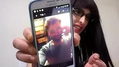This brunette trans is enjoying a good time in front of the camera with some guys who are curious for her
