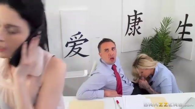 His boss tells him that she wants his cock so he has to obey orders even if his girlfriend is nearby!