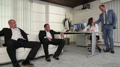 The boss hired for her hot looking to make the potential inverstors love to visit him showing them a good time before starting business