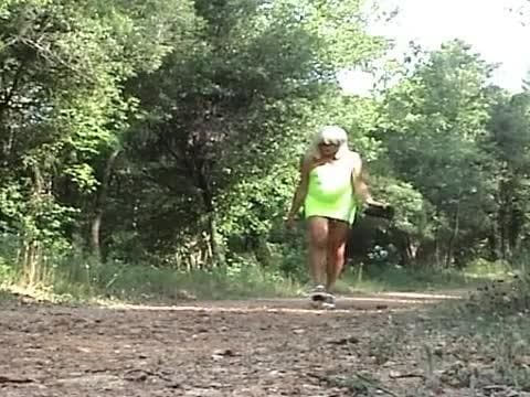 In various locations we see the same guy dressed up as a girl, he is wearing a blonde wig and a short skirt with high heels