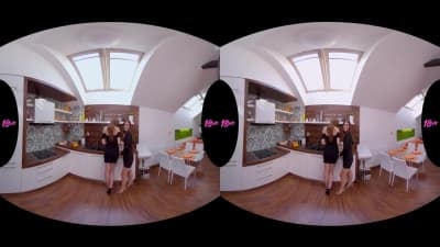 Two lesbians, will play with each other's pussies first and then, by being super aroused they fuck the guy's cock, in POV and VR!