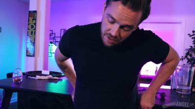 Two slutty angels sucking the bartender's cock after closing enjoying a late night fuck in threesome moaning and sharing that dick