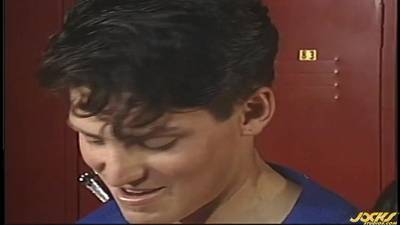 In the men locker room one guy get's fucked by two men, he sucks a dick while receiving a dick in his ass at the same time.