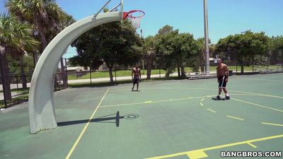 She saw them plying basketball and hot real horny seeing their body shape and knowing they are packing huge cocks, decided to seduce them and get fucked
