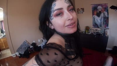 Two beautiful Gothic lesbians covered in tattoo's and dressed in sexy outfit's lick each others pussy. Facesitting, fingering and strap-on penetration