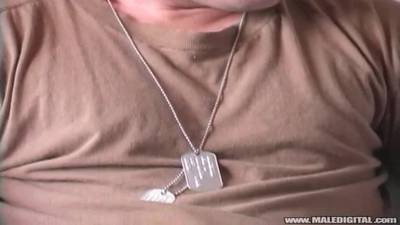 Soldier talking to his mate while jerking off