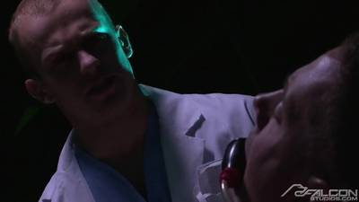 A helpless guy in the asylum get's tortured, his dick sucked by two dominant men. They also make him lick ass.
