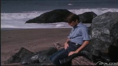 A handsome man on the beach enjoying a moment of privacy and uses this moment to release some sexual tension.
