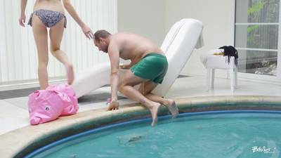 Stacy Cruz looks amazing in her cute bikini. Her man licks her pussy in the swimming pool and plays with her big boobs.