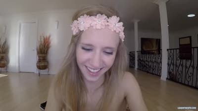 This video features a cute and very sexy young girl - Rachel James - sucking a huge cock in POV and getting fucked