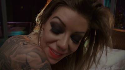 Hot tattooed slut sucks big black cock while she's being anal spooned by another feeling so good and Slutty and can't have enough of those BBCs