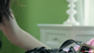 Horny brunette on the bed feeling so horny after touching herself and got so happy seeing her boyfriend who start licking her pussy and fucked her after