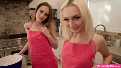 Cooking show with two teen stepsisters Kyler Quinn and Chloe Temple becomes way too hot when they both went on their knees for their cousin
