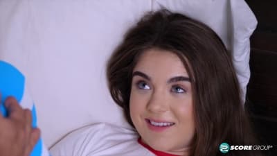 A little nasty teen brunette shows her tits for the guys in her phone when her father's friend came by and fucked her hard