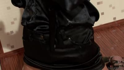 Hot blonde found a hole in the toilet with a black dick out from it start playing with it and got huge load of jizz on her