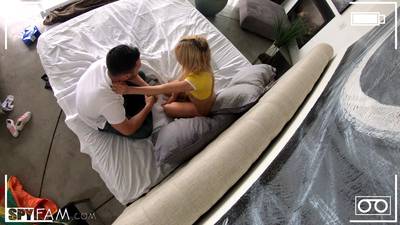 This beautiful blonde is intensely aroused and masturbates her pussy with a vibrator to orgasm then sucks her stepbrother's big white cock!
