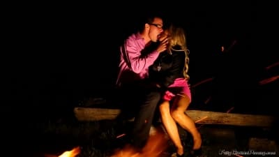 He set up a romantic place and made the fire and enjoy fucking this hot blonde next to it